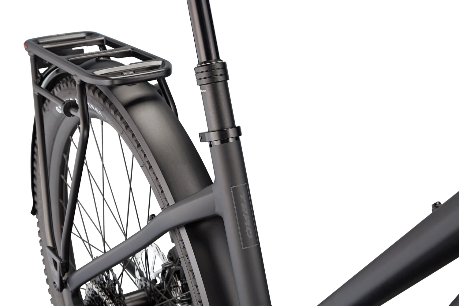 Varustettu DRYTECH lokasuojilla, LED-etu- ja takavaloilla sekä 27 kg:n kapasiteetin takatelineellä. Tarakka on yhteensopiva lasten istuinten kanssa, ja pyörä on mitoitettu vetämään myös perävaunua.