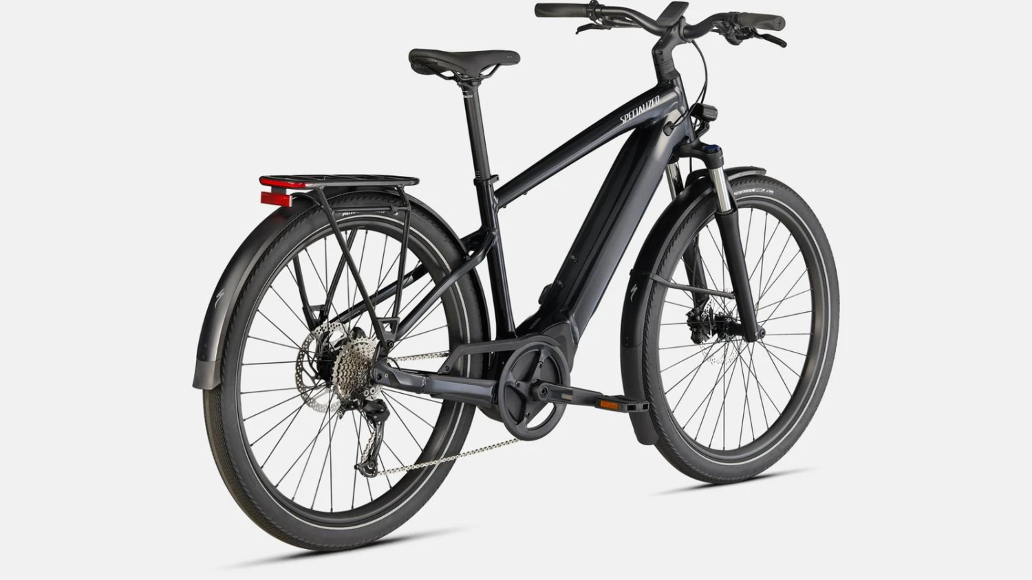 - Varustettu DRYTECH-lokasuojilla, LED-etu- ja takavalolla ja HD-tavaratelineellä, jonka kantokyky on 27 kg. Tavarateline on yhteensopiva lastenistuimien kanssa, ja pyörä on myös mitoitettu vetämään perävaunua.